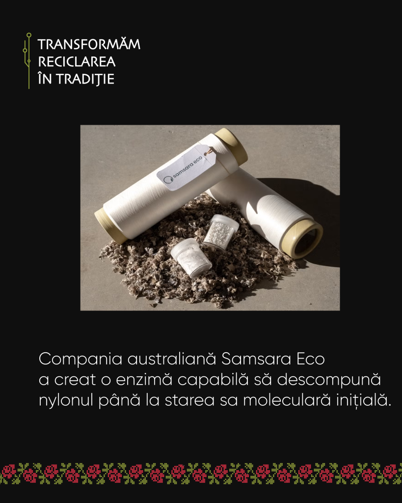 | 🧬 Enzimatică | Descompunere moleculară → monomeri | Material nou, identic cu originalul | Nylon 6/6.6 pentru haine premium |